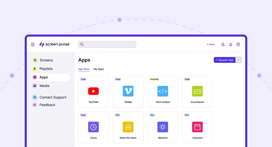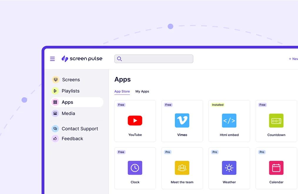Make your screens interactive. Screen Pulse supports touch-enabled displays for kiosks, directories, and interactive boards. Add apps, schedules, or custom content that visitors can explore with a tap - transforming digital signage into a two-way experience.